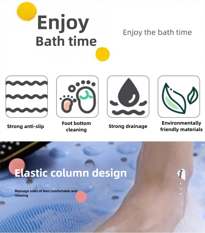 The mat features strong suction cups on the bottom to firmly attach to smooth surfaces, helping prevent slipping and accidental falls. Its massage-textured surface offers a comfortable feel underfoot while improving grip during use. The solid color, modern design blends easily with any bathroom décor.